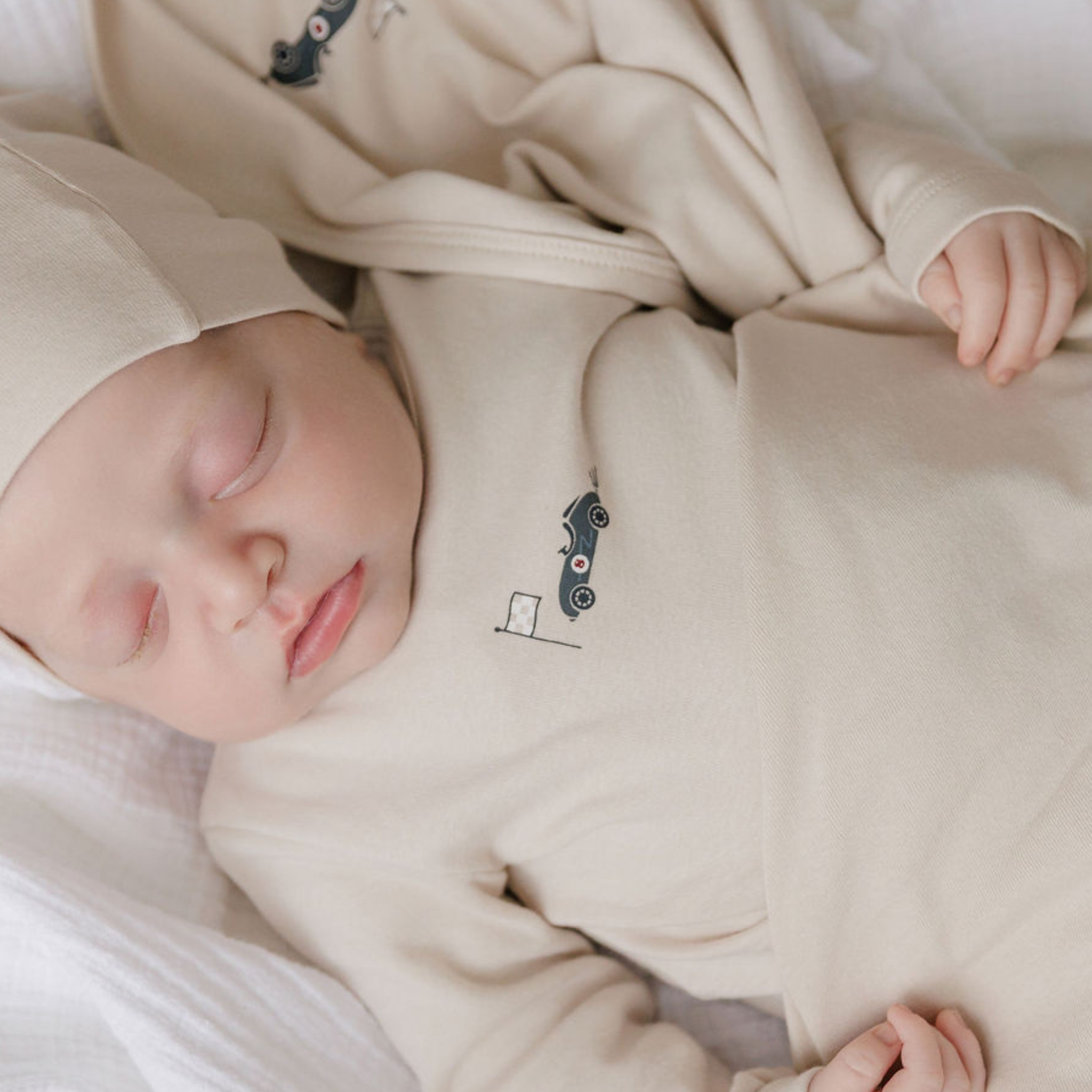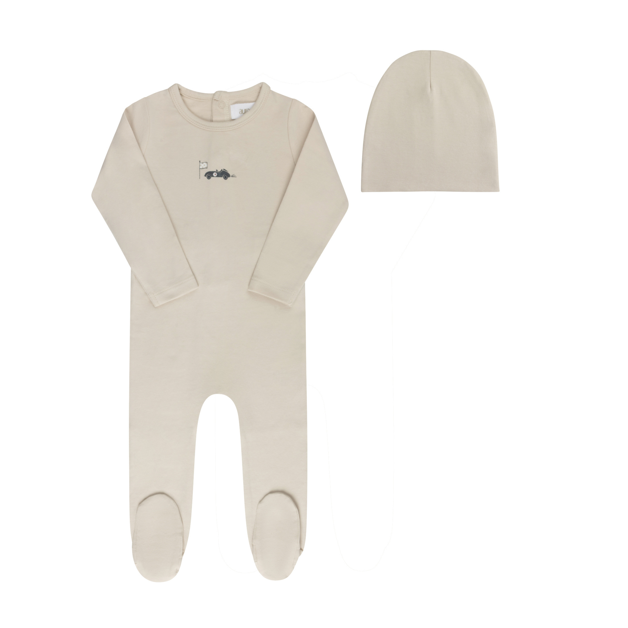 Tan Race Car Footie and Beanie