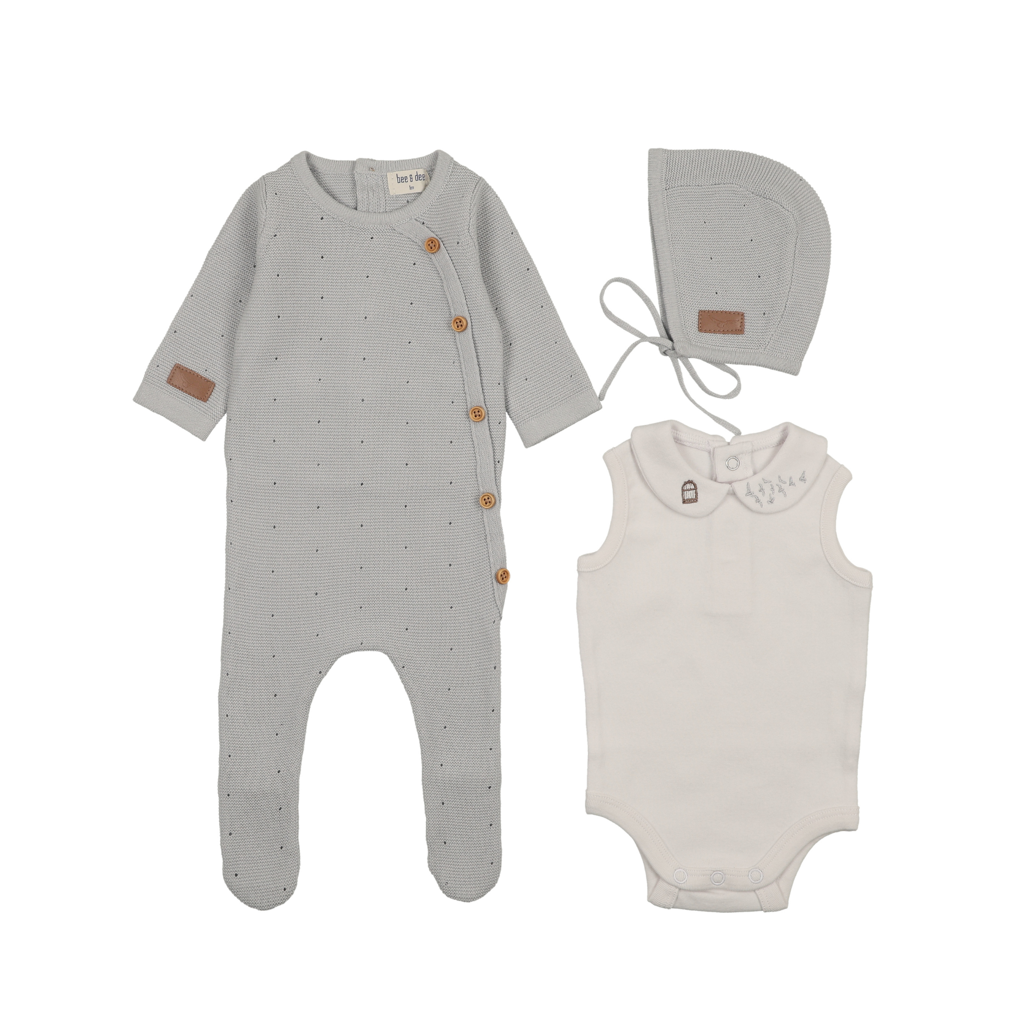 Dusty Blue Crepe Birdcage Footie and Beanie