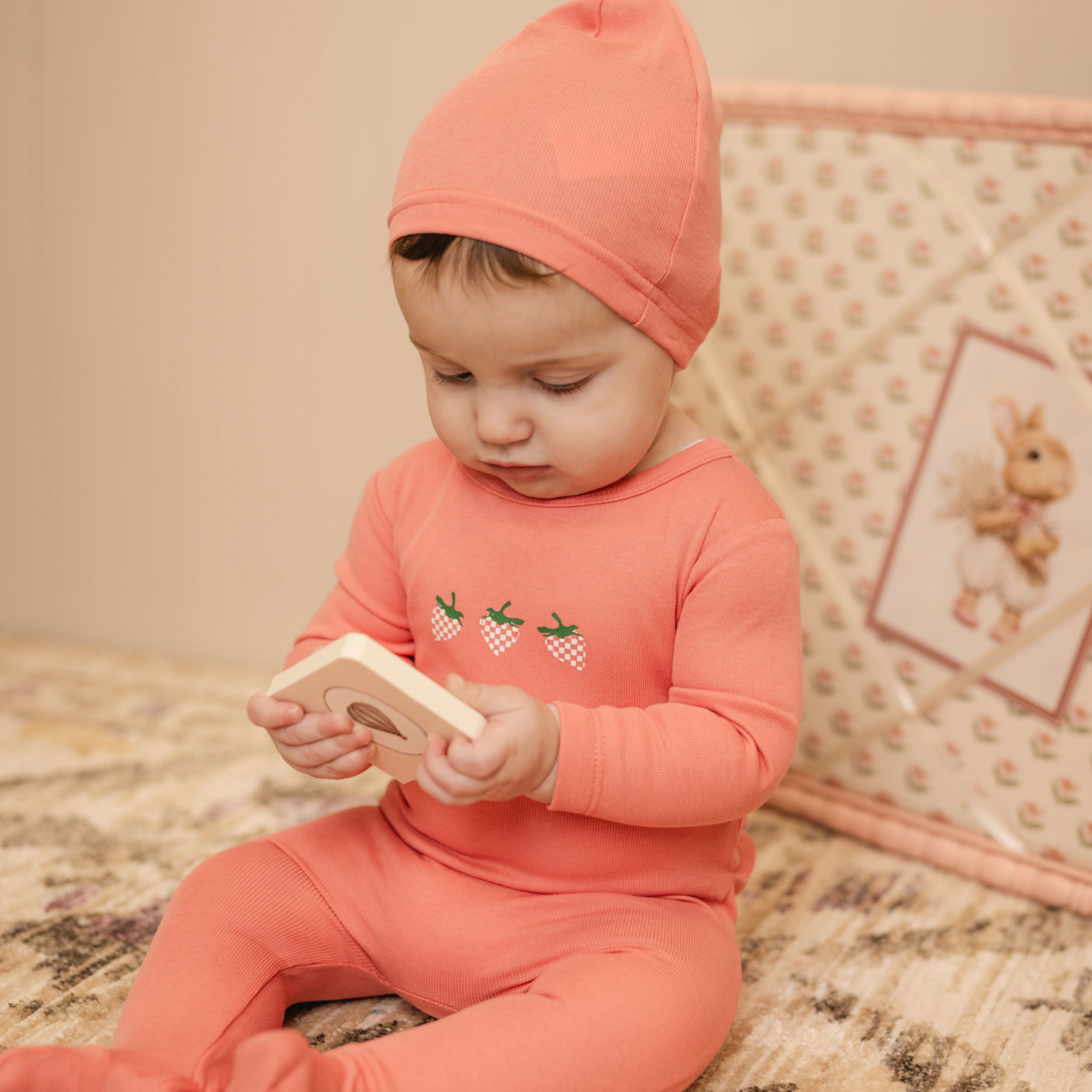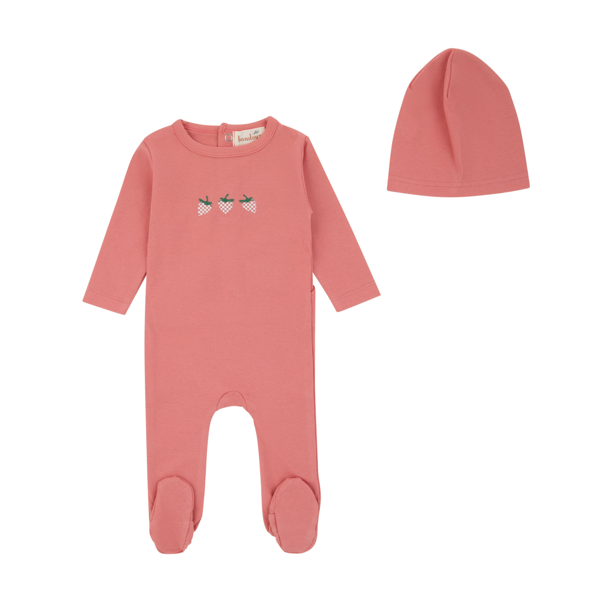 Peach Pink Strawberry Footie and Beanie