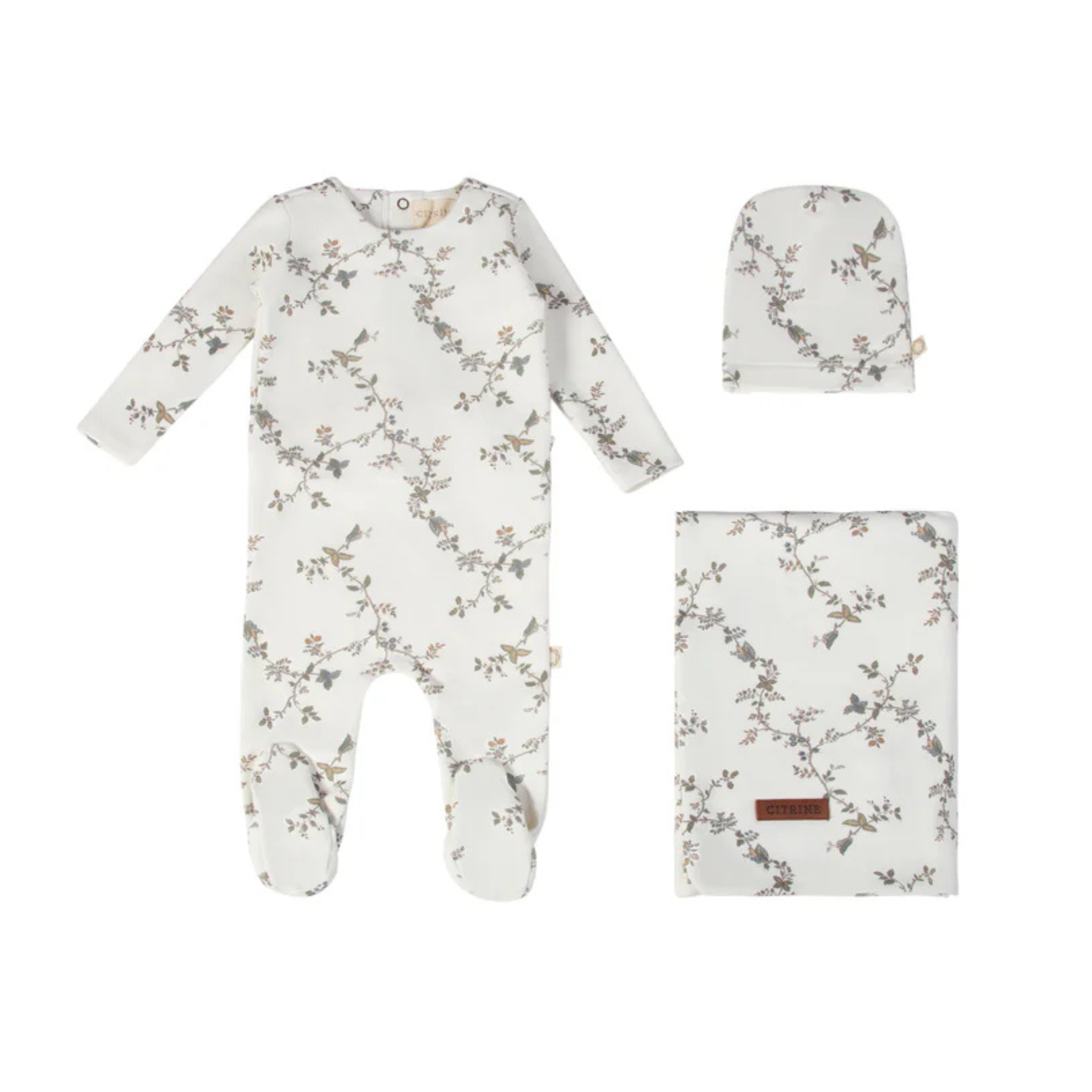 White Blue Vines Layette Set