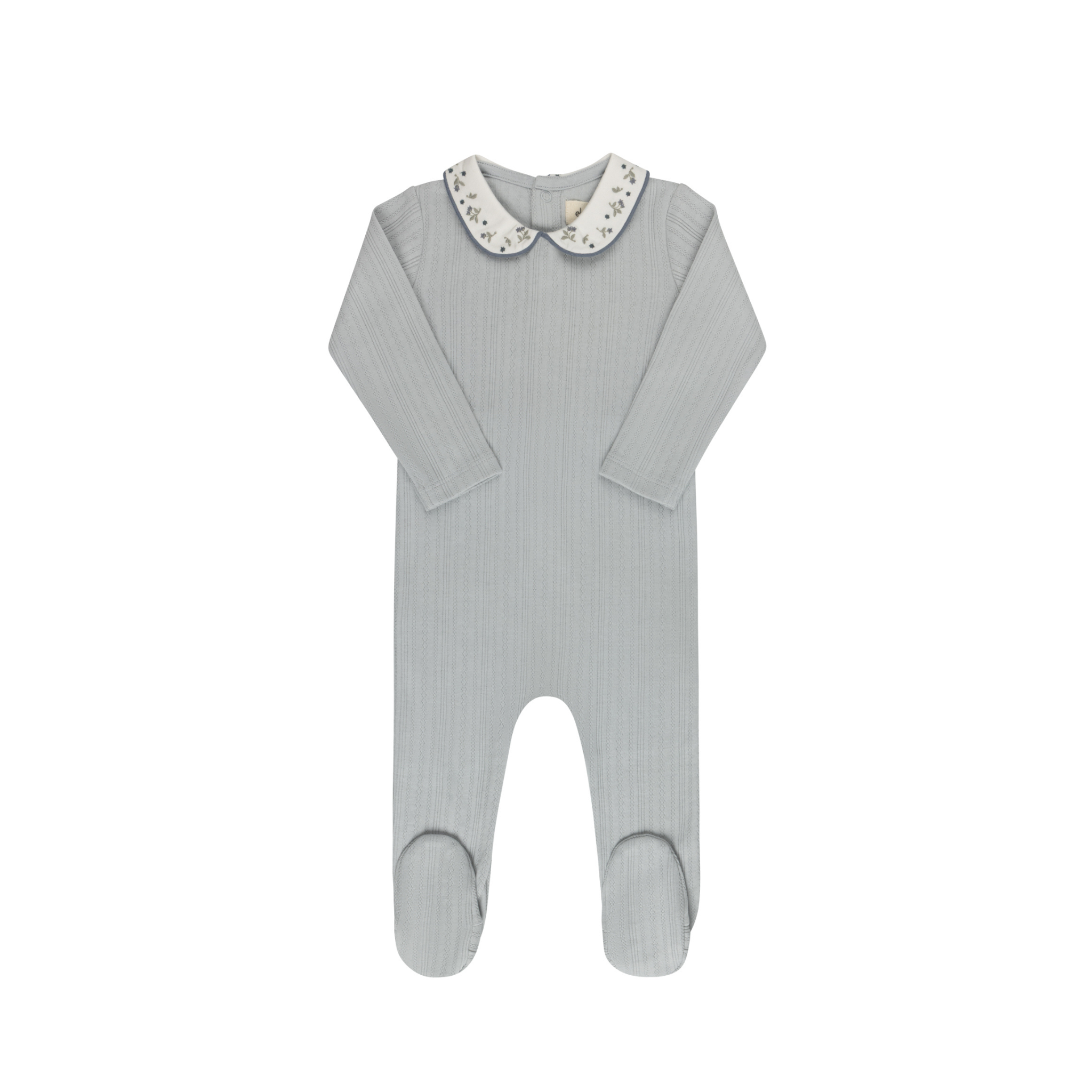 Blue Floral Embroidered Collar Footie