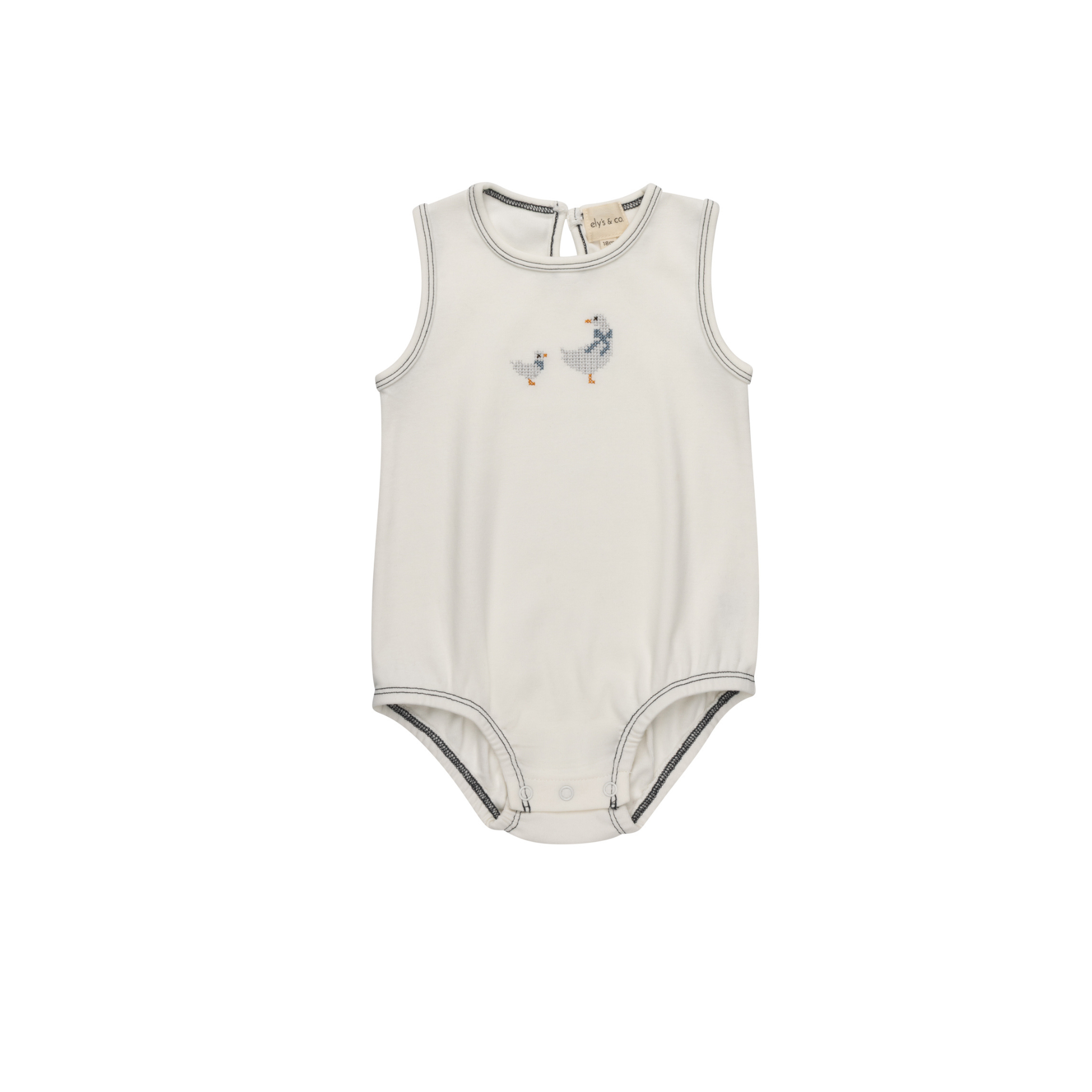 Ivory Blue Cross Stitch Duckling Romper