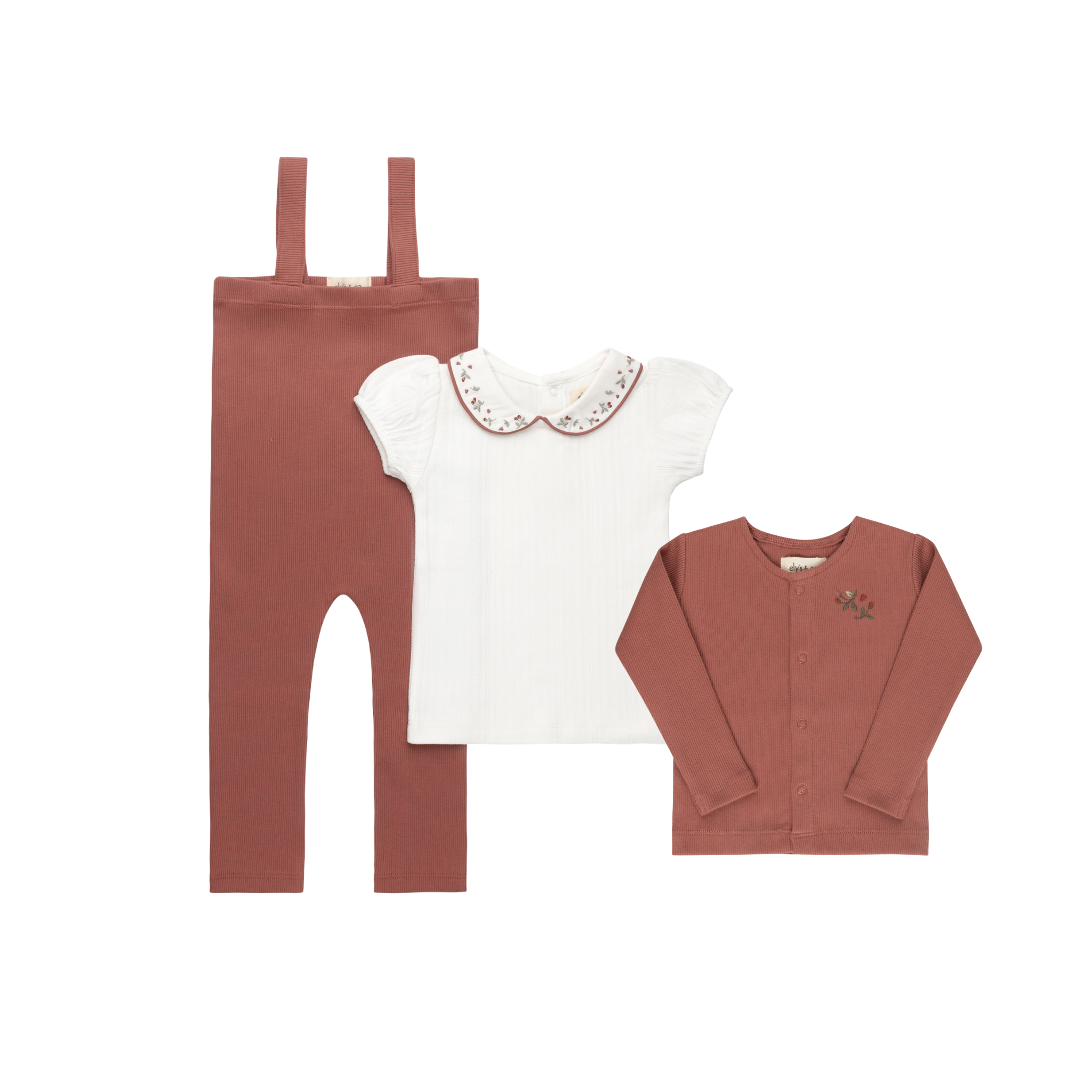 Ivory Pink Floral Embroidered Collar Bodysuit, Overalls & Cardigan