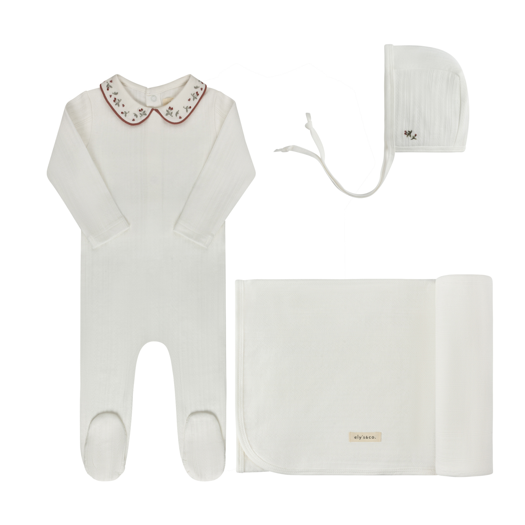 Ivory Pink Floral Embroidered Collar Layette Set