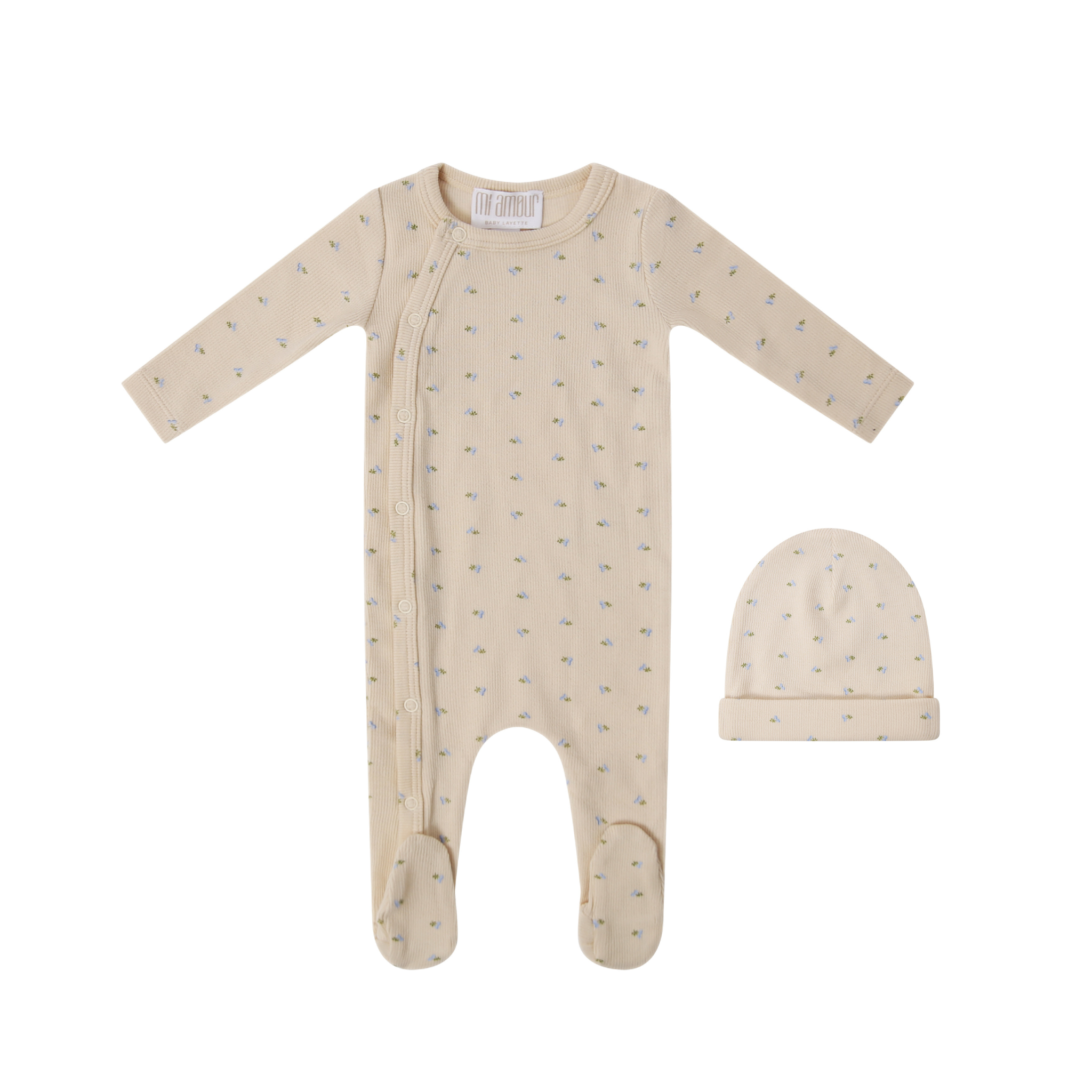 Blue Floral Little Petals Footie and Beanie