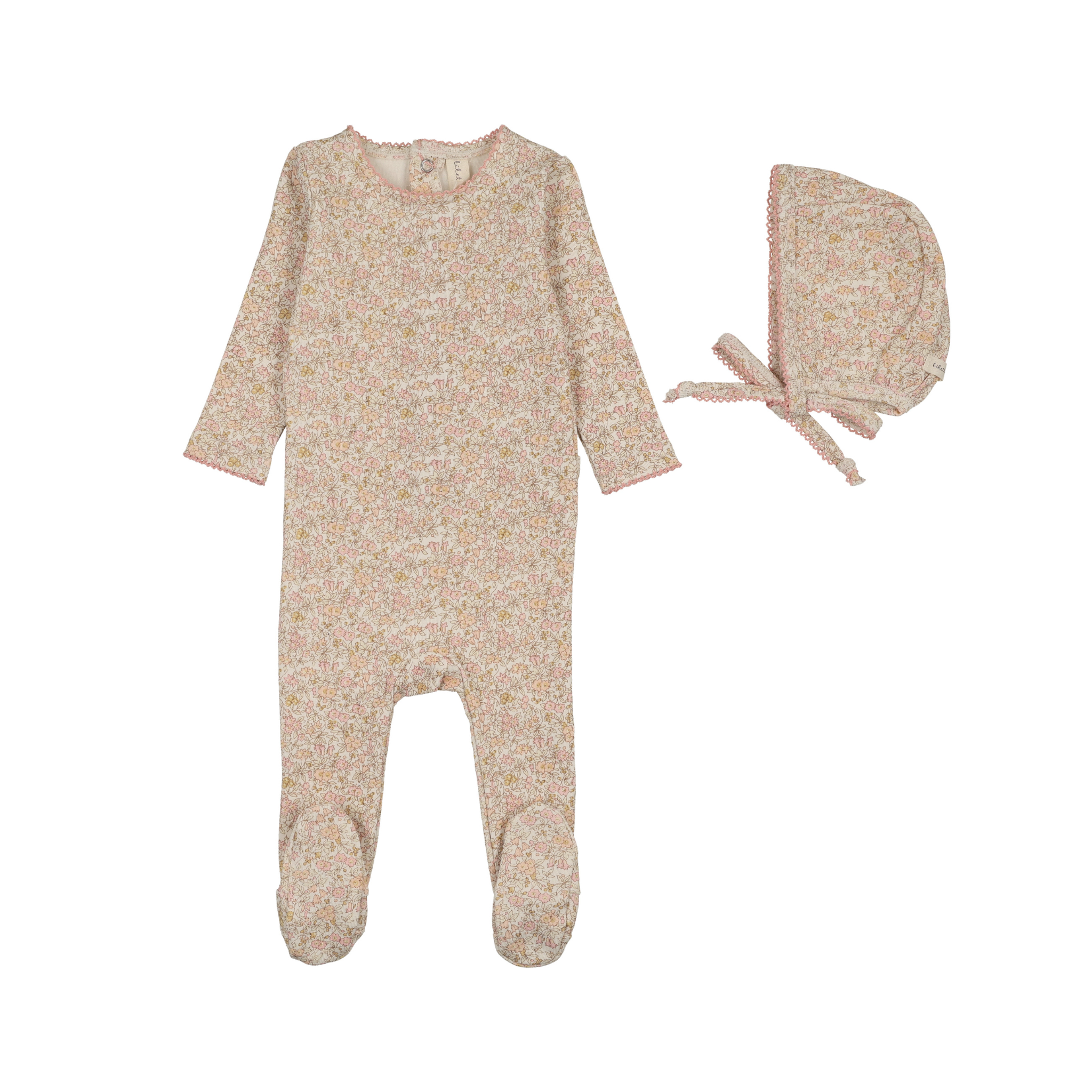 Cream/Pink Liberty Floral Footie and Bonnet