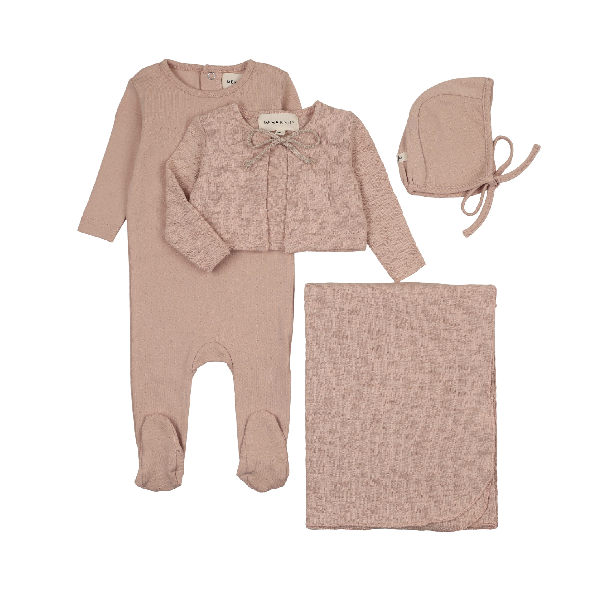 Pale Pink Pointelle Footie, Slub Cardigan Layette Set