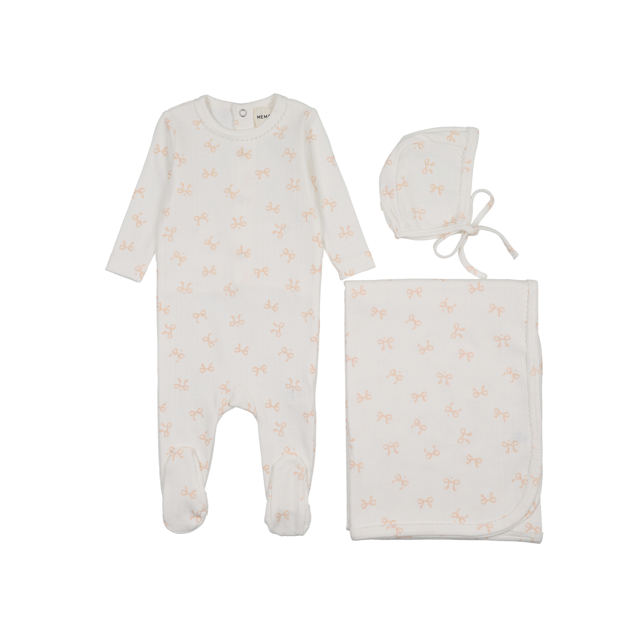 Winter White- Rose Smoke Bow Print Pointelle Layette Set