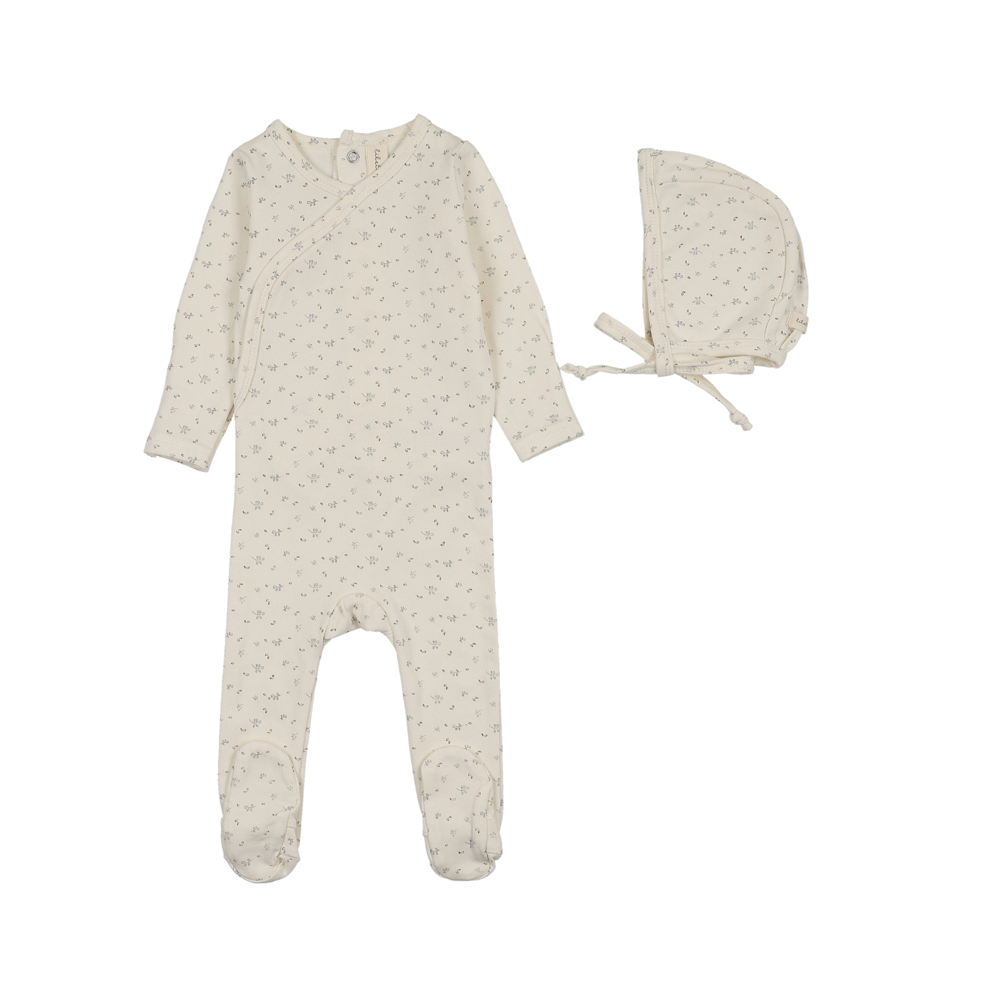 Cream/Blue Printed Wrap Footie and Bonnet