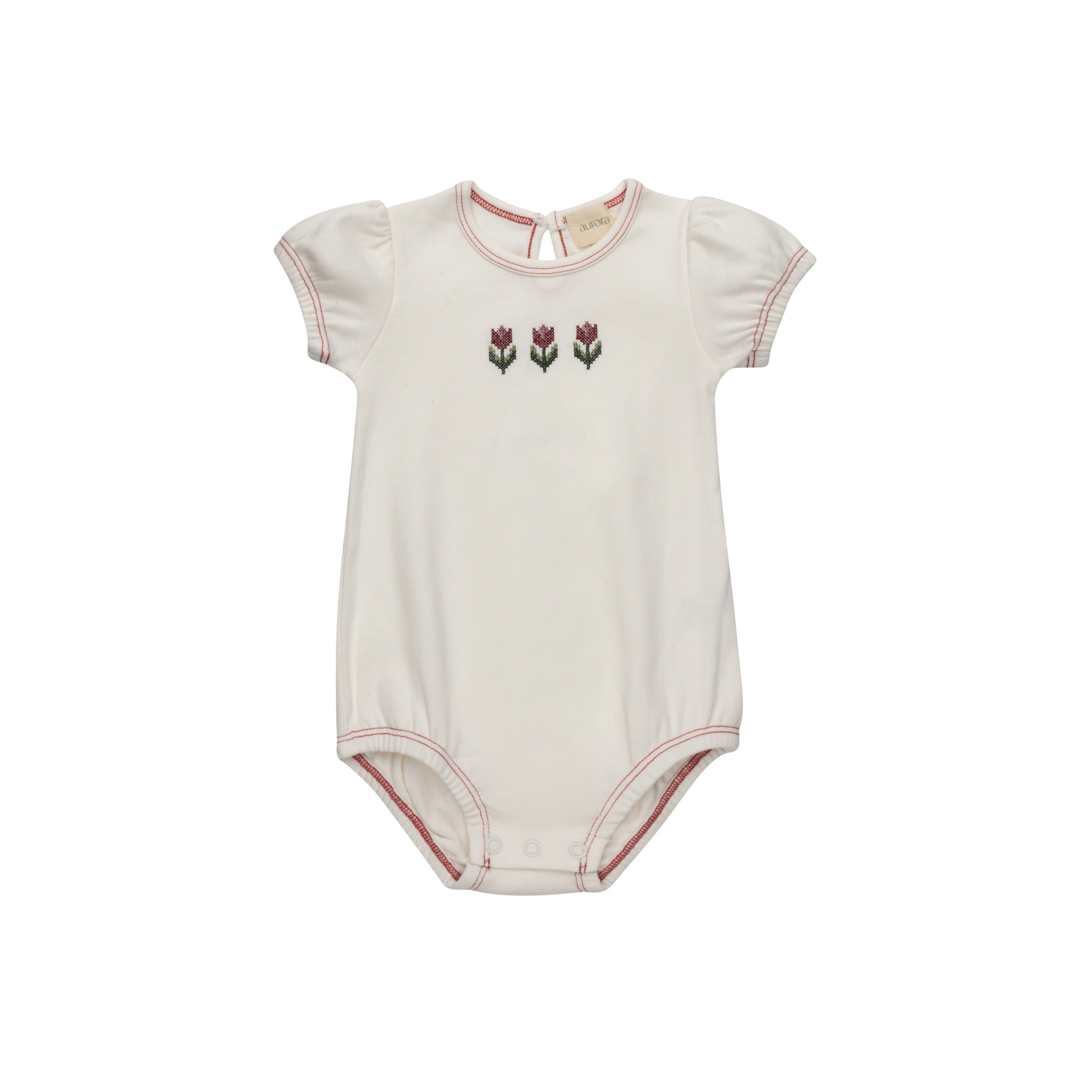 Ivory Pink Cotton Crosstitch Tulip Collection Romper