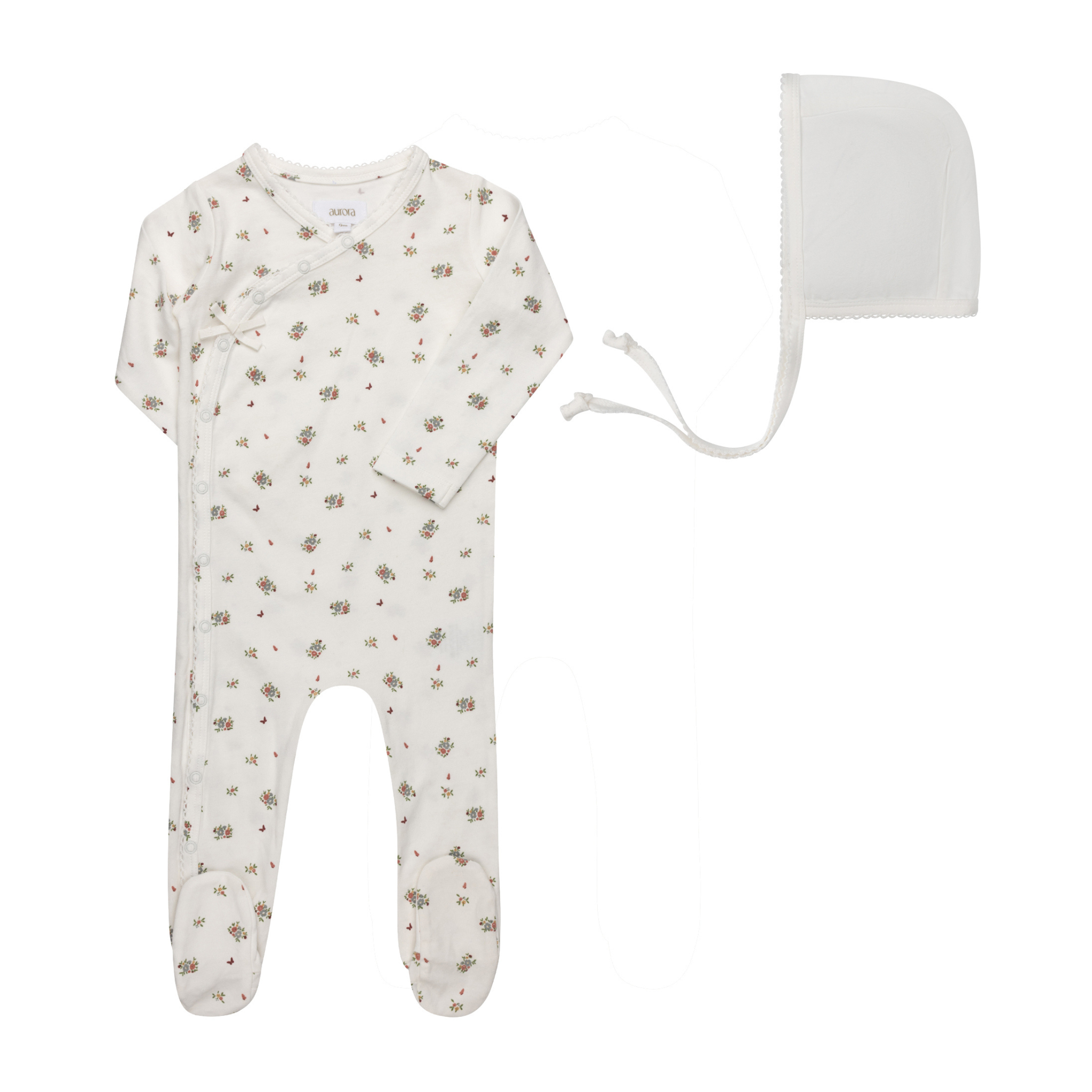 Ivory Pink Jersey Cotton Print Collection Footie and Bonnet