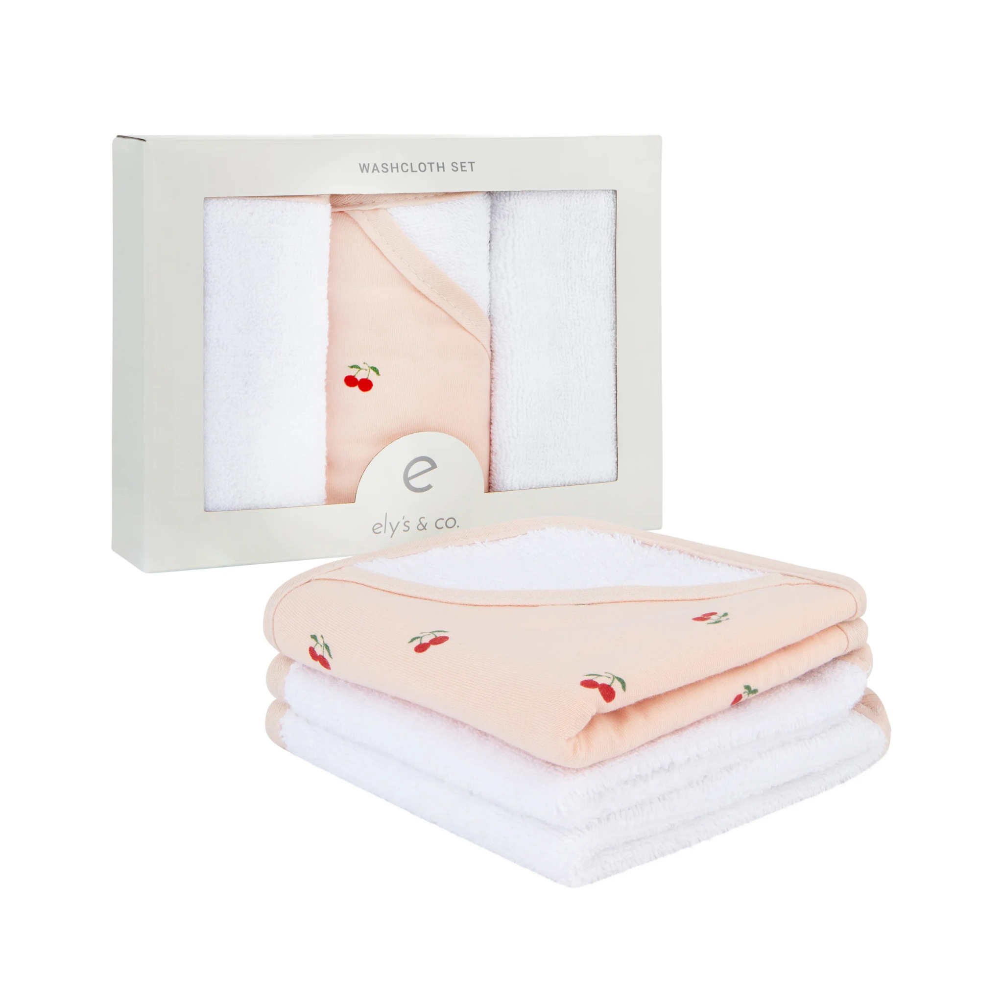 Ely’s & Co. Cotton Terry Washcloth Set includes 3 (three) 10” x 10” washcloths. Bundled in a chic, compact, gift-ready box, this essential bath time set makes for the perfect baby shower gift!