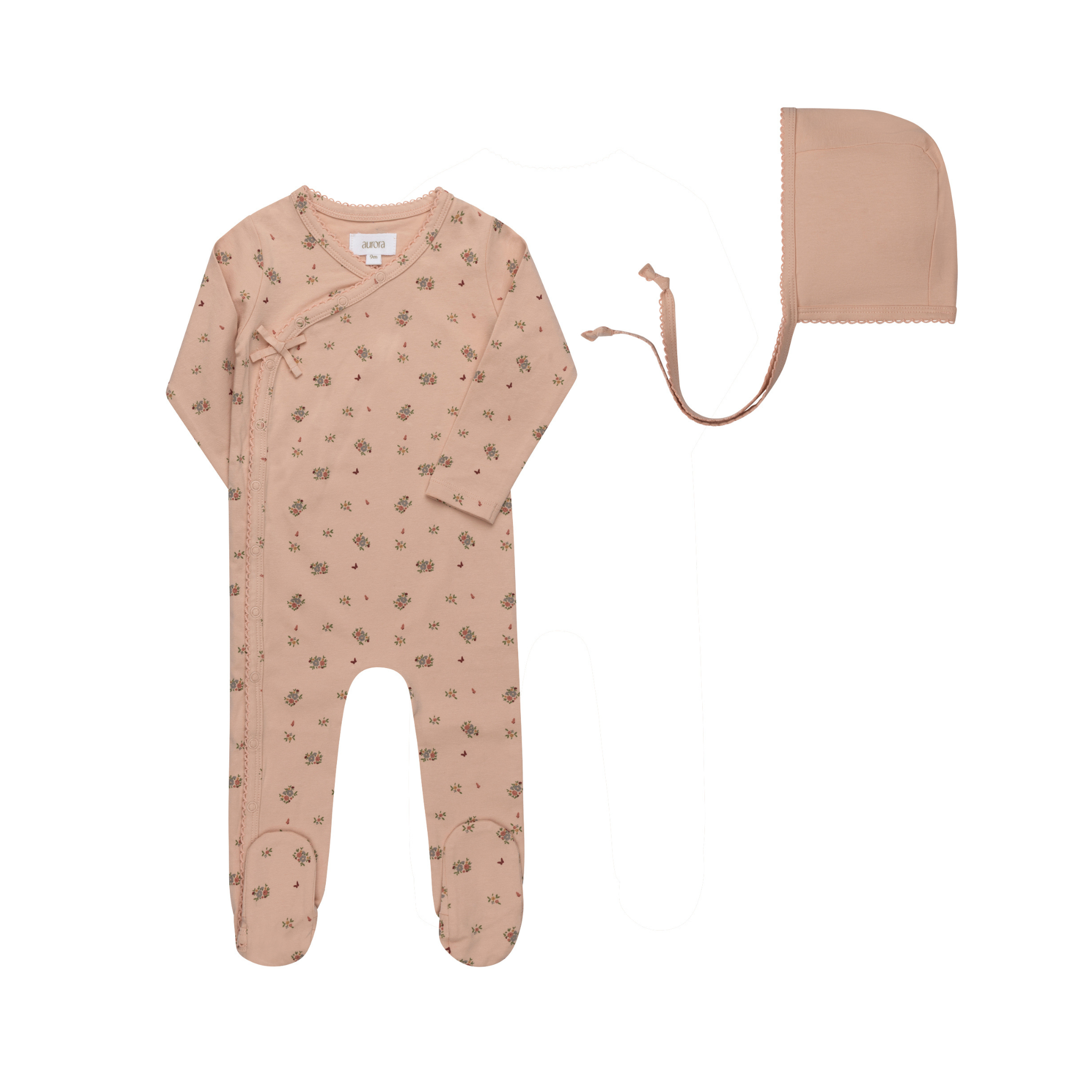 Pink Jersey Cotton Floral Print Collection Footie and Bonnet