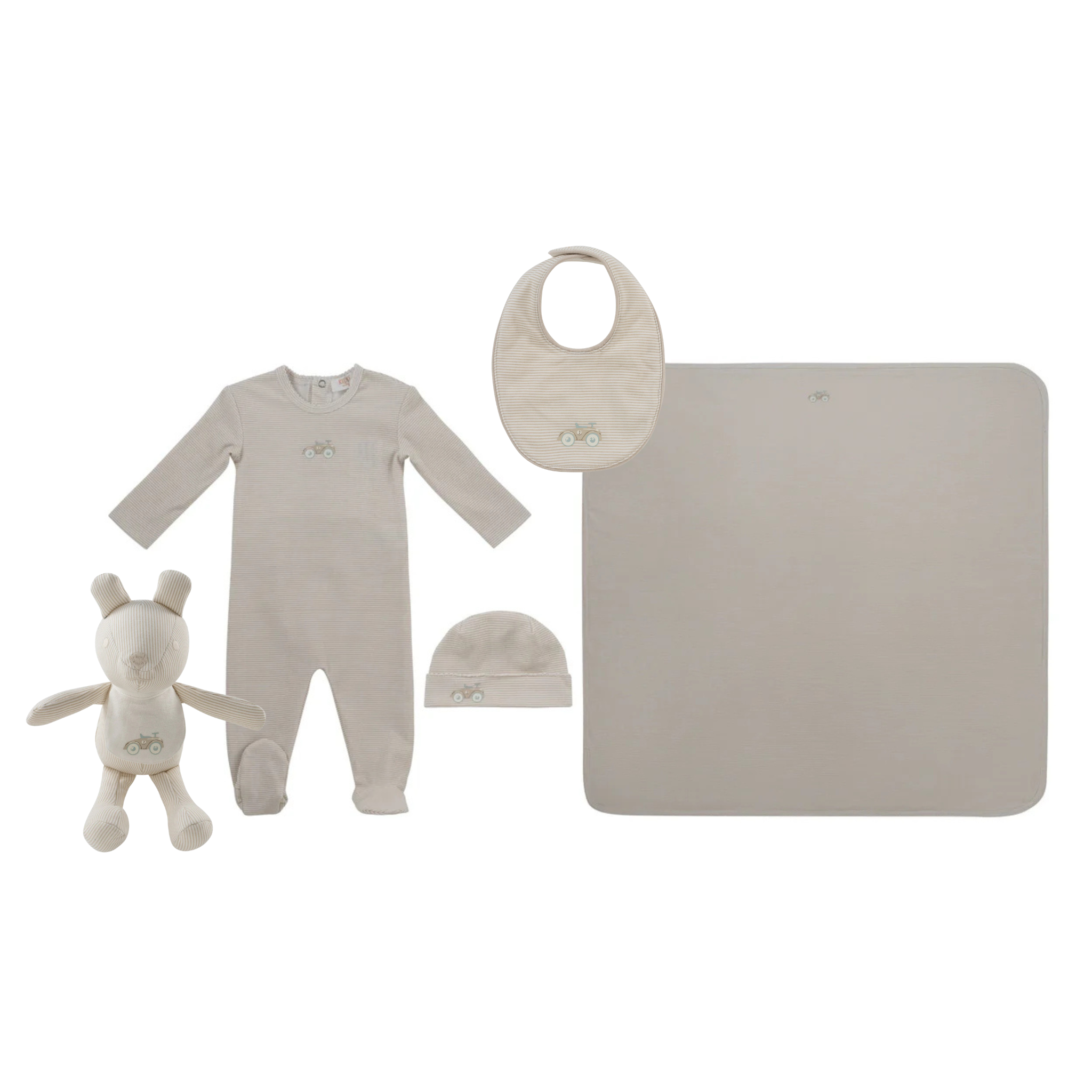 Stone Carrera Pinstripe Layette Set, Bib & Teddy
