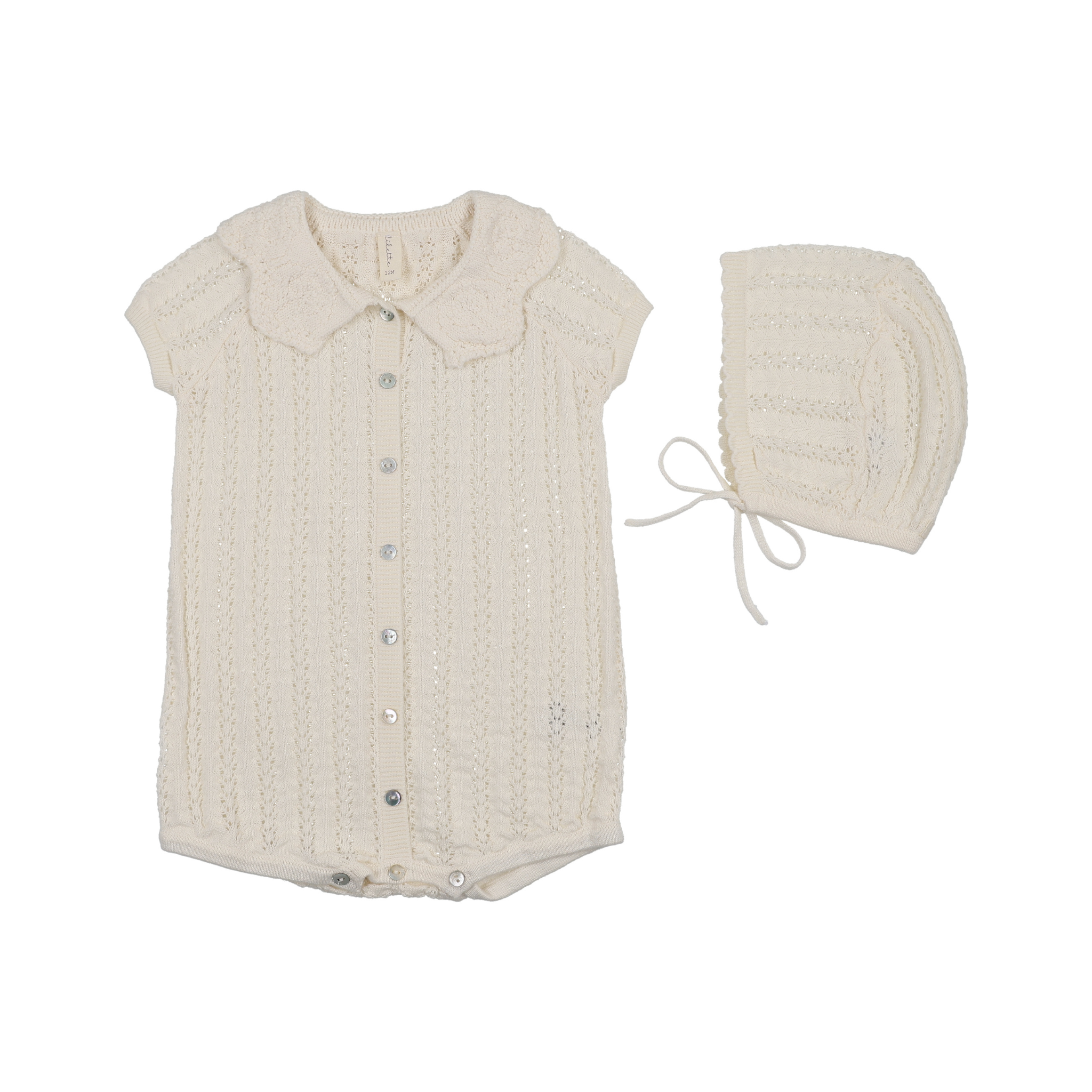 Cream Crochet Knit Girls Romper