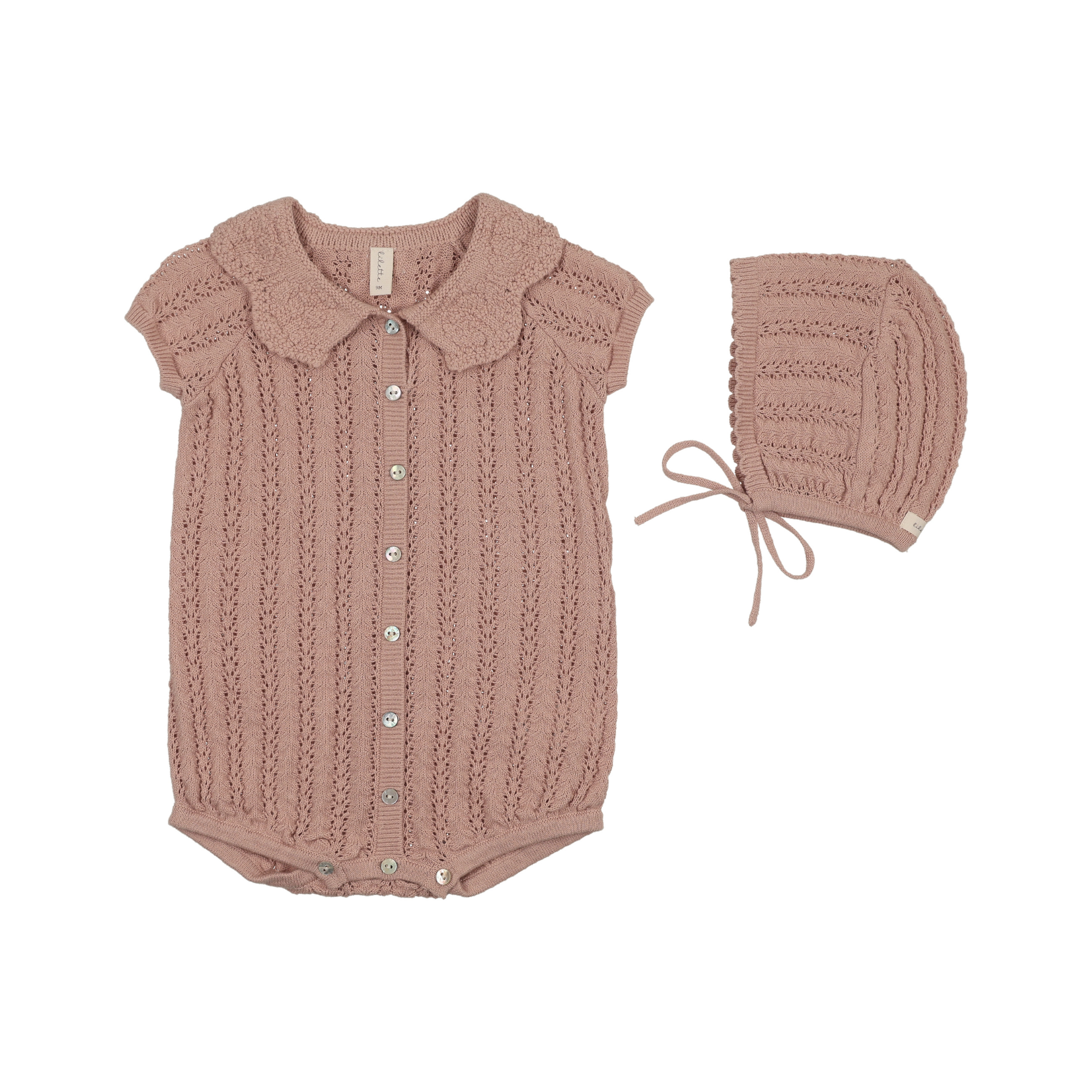 Dusty Pink Crochet Knit Girls Romper