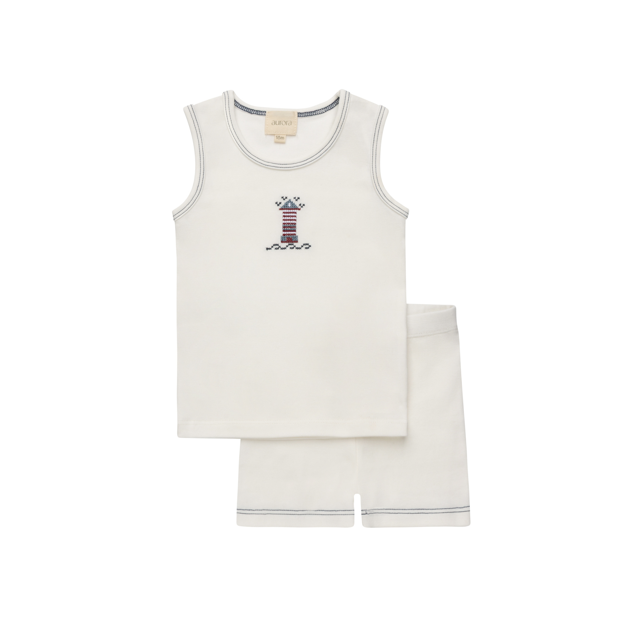 Ivory Pink Cotton Crosstitch Tulip Collection Tshirt & Bloomer