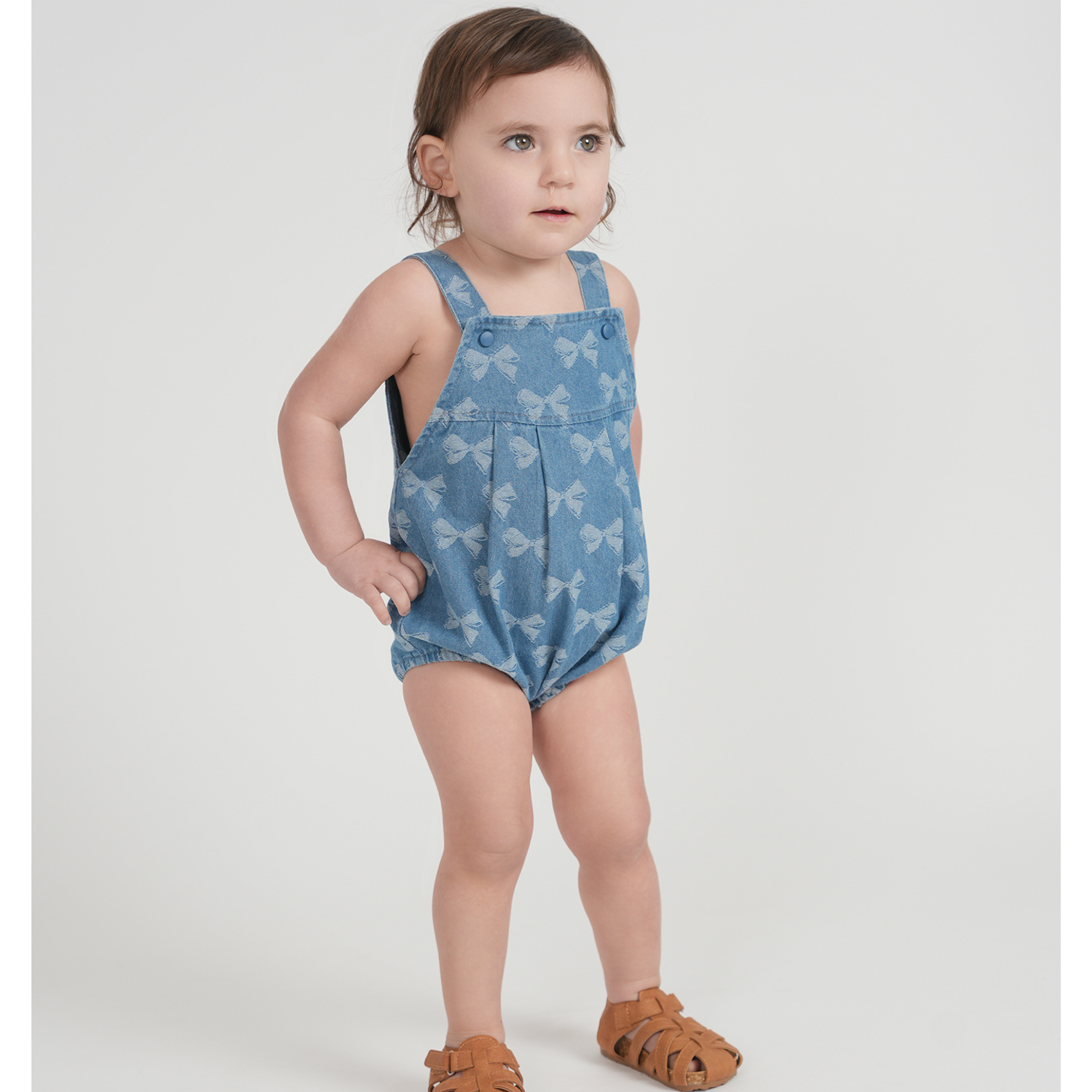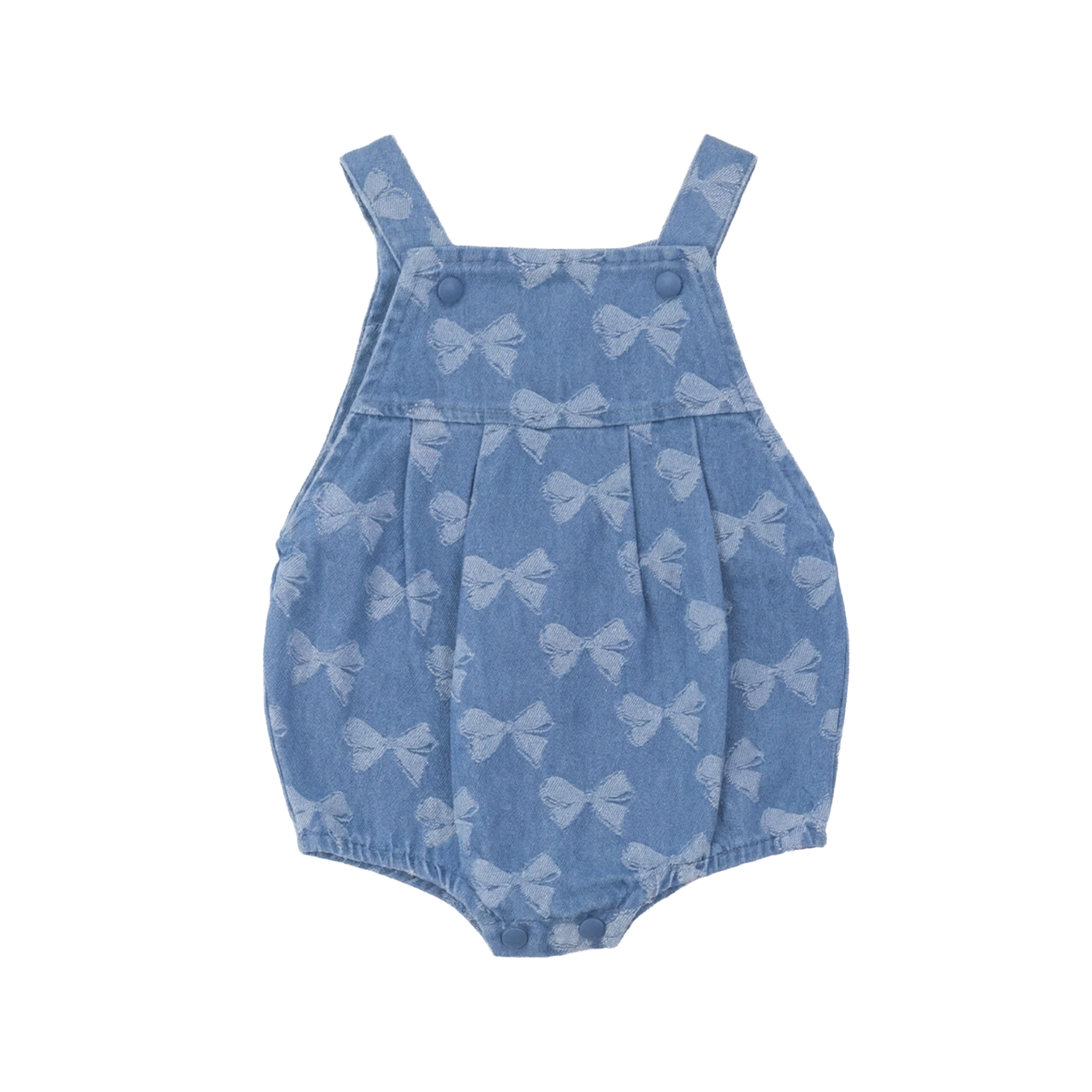 Light Denim Girls Bow Printed Denim Overall