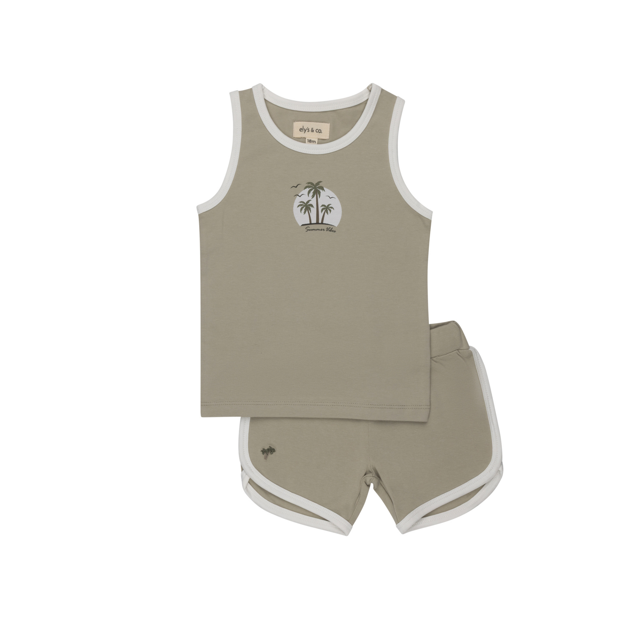 Sage Ribbed Printed Palm Terry Tank & Shorts