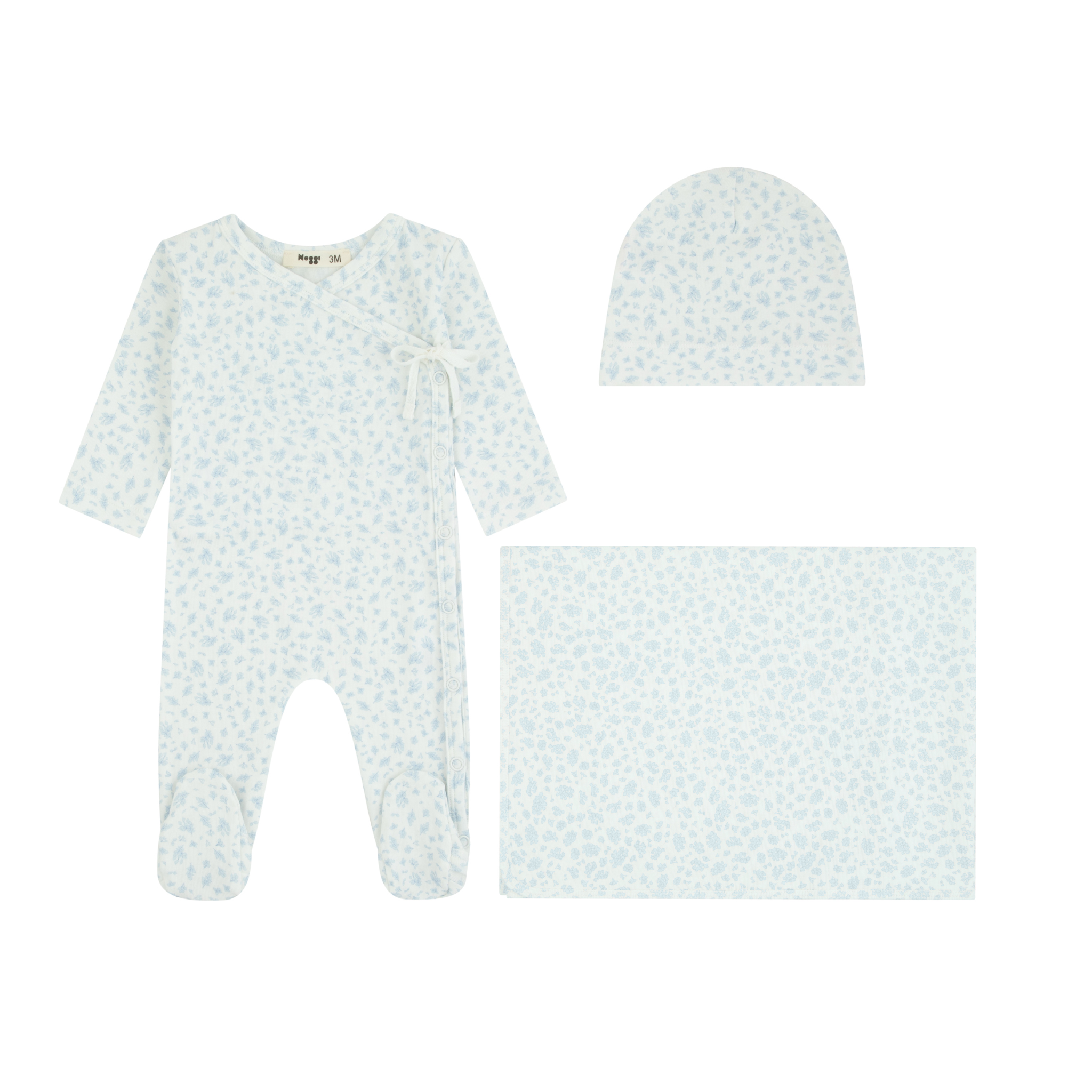 Blue Floral Printed Wrap Layette Set