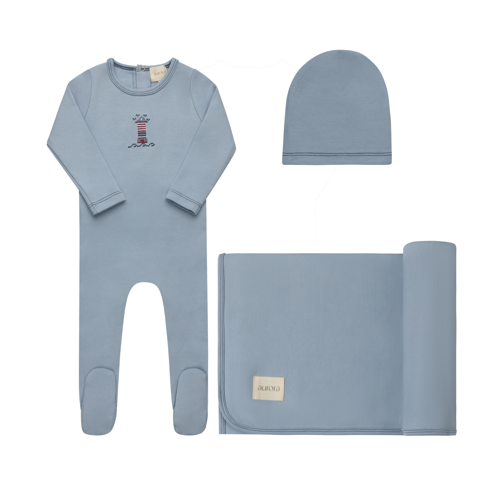 Blue Cotton Crossstitch Lighthouse Collection Layette Set