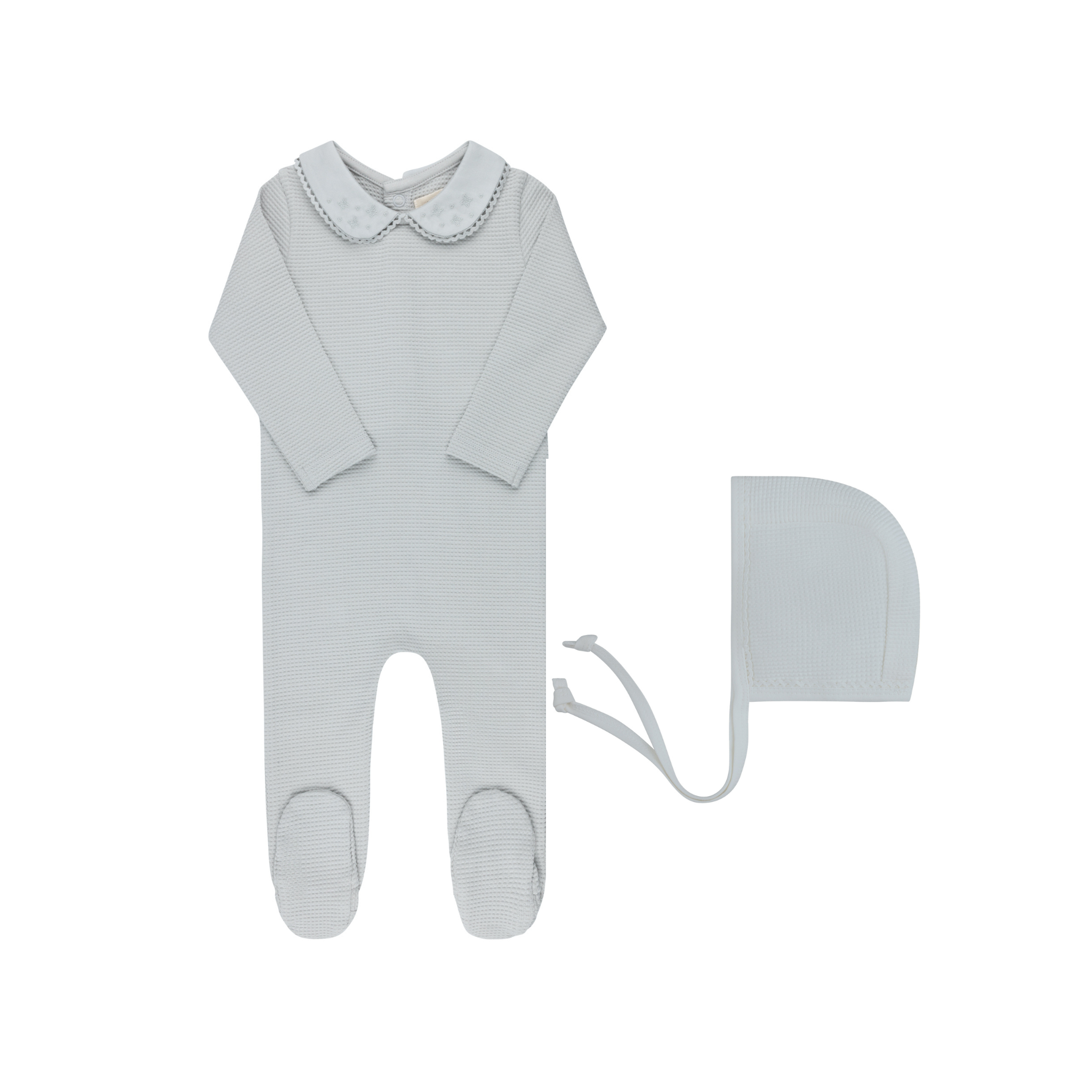 Blue Embroidered Collar Footie and Bonnet