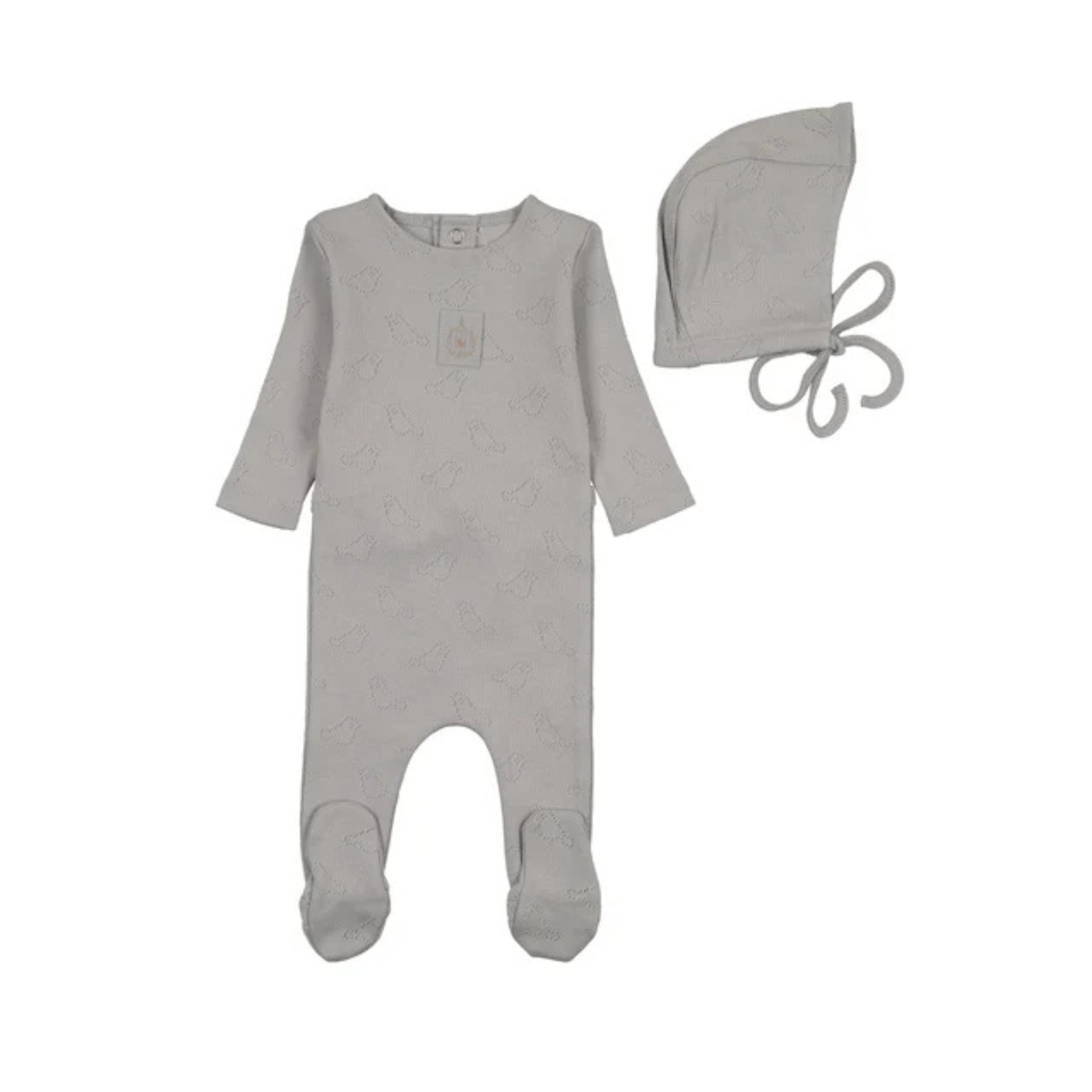 Dusty Blue Bird Pointelle Footie and Bonnet