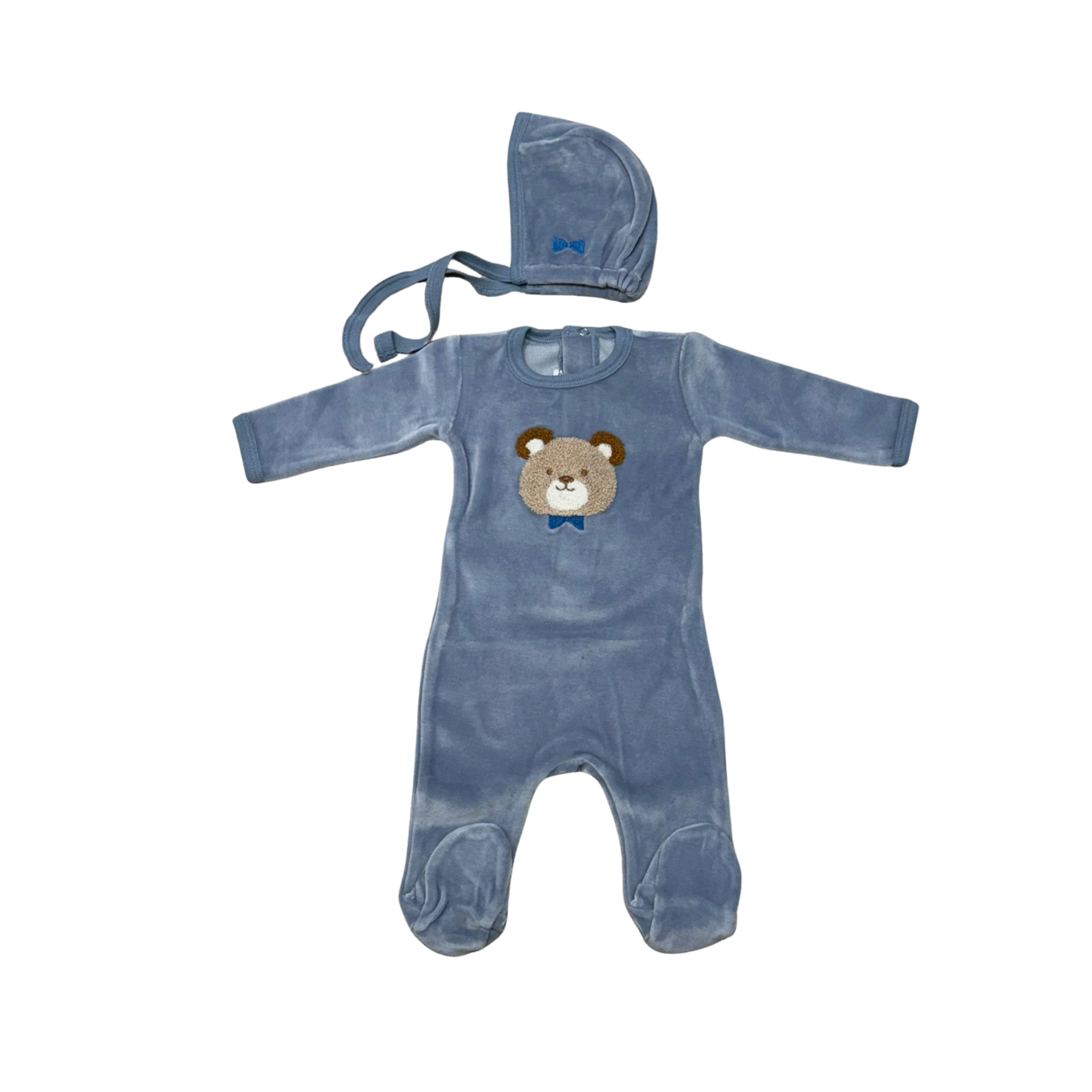 Forever Blue Lovely Teddy Velour Footie and Bonnet