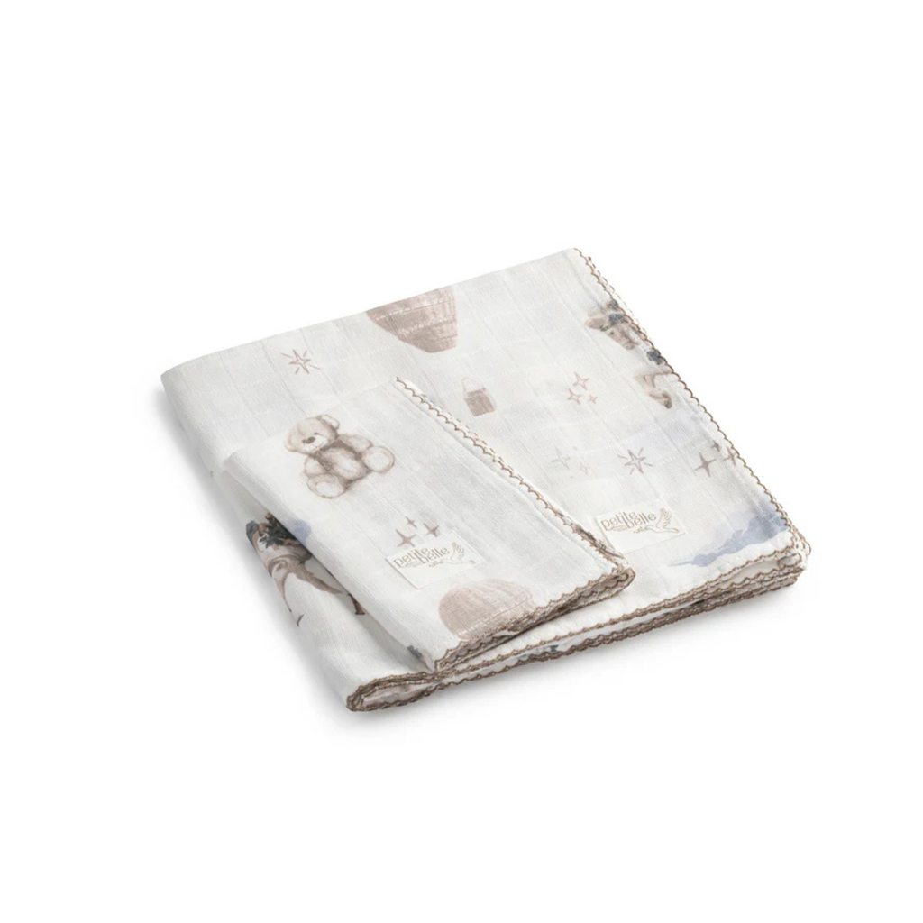 Teddys Tale Swaddle & Burp Cloth Set