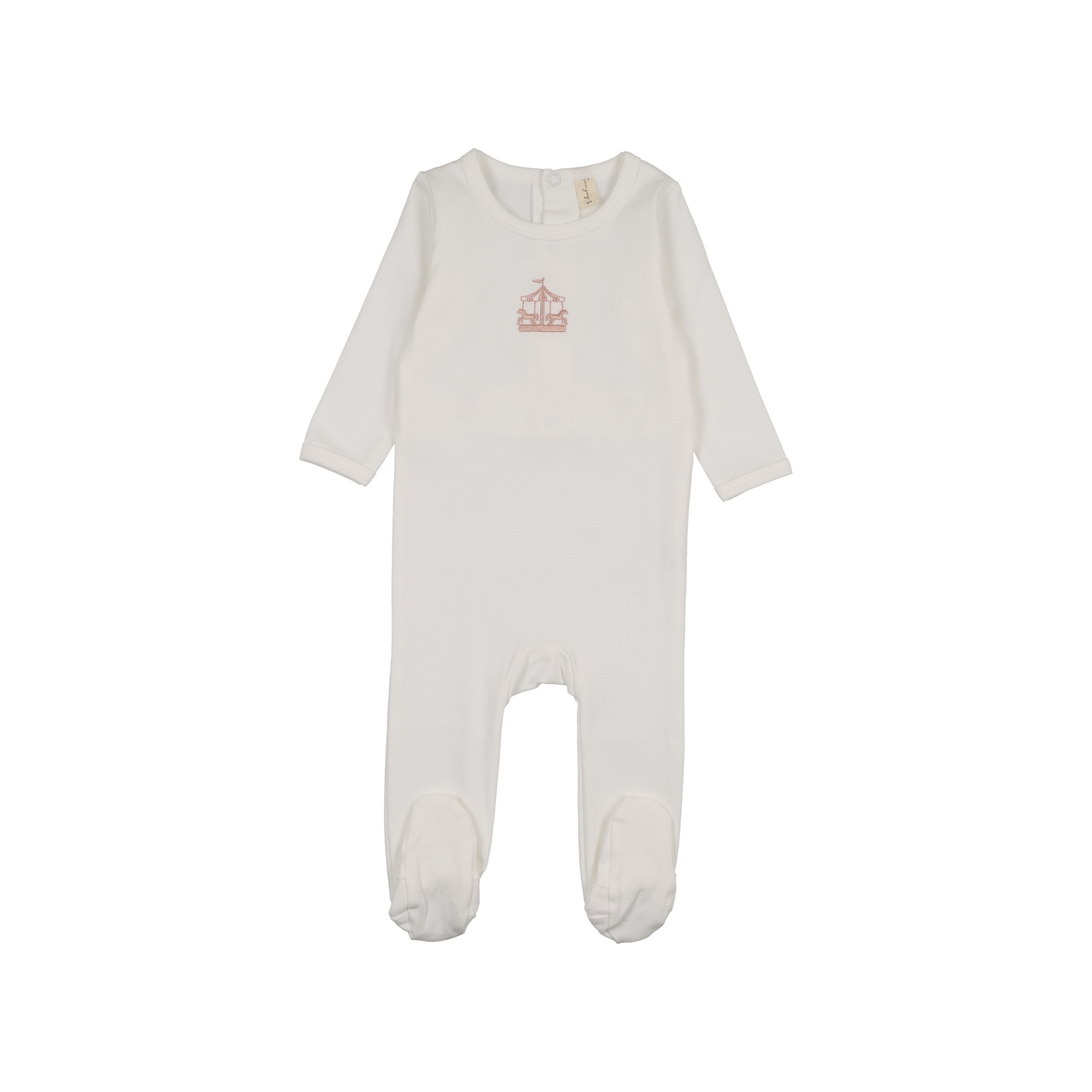 White with Pink Carousel Embroidered Graphic Footie