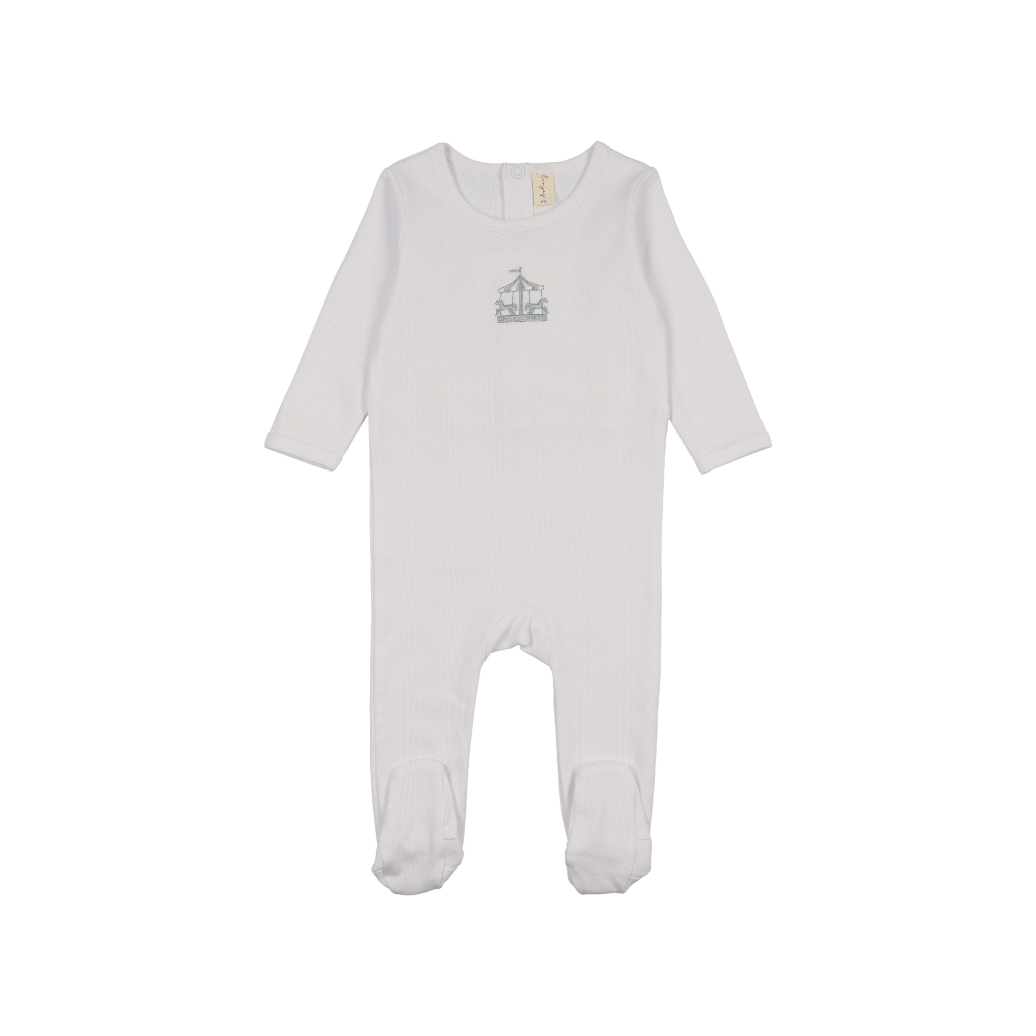 White with Sage Carousel Embroidered Graphic Footie